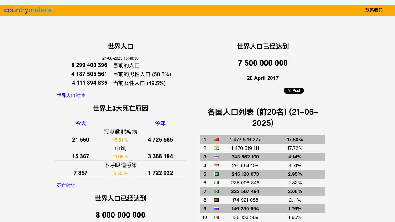任何国家目前的人口的实时统计。实时数据,对人口出生,死亡,净迁移和人口增长。