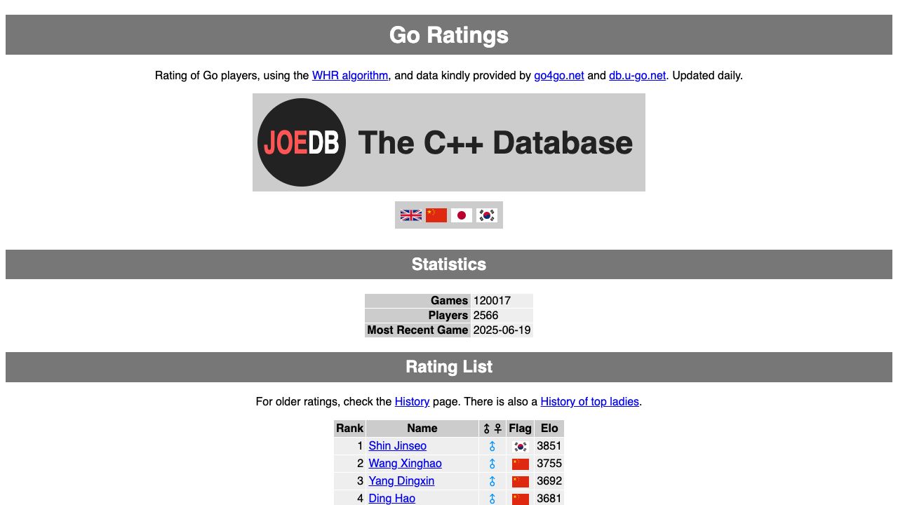 全球围棋棋手排行榜 - Toolidx