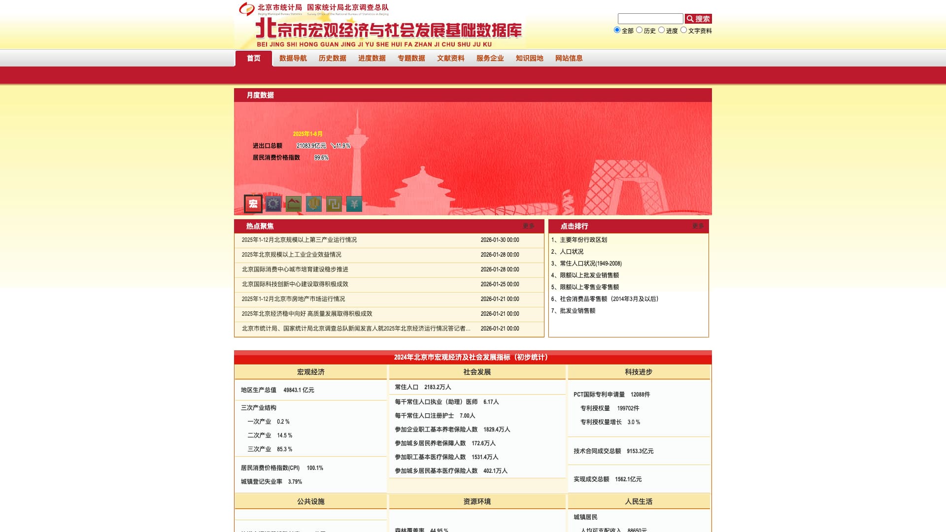 北京市宏观经济与社会发展基础数据库