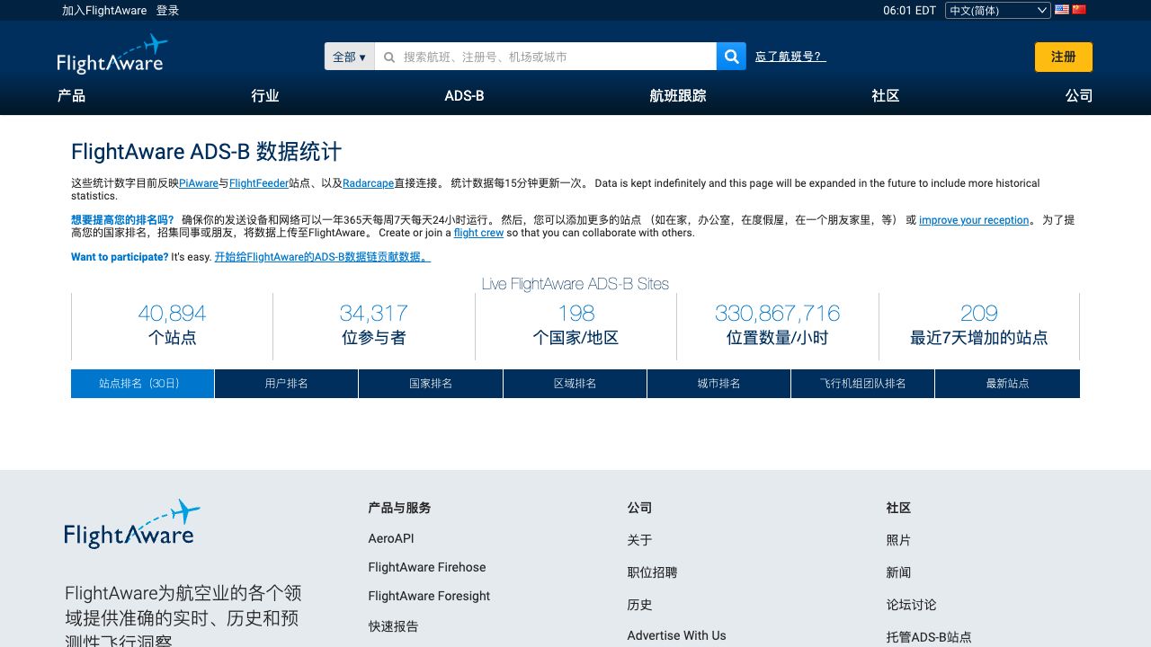 Statistics for sites feeding ADS-B flight tracking data to FlightAware. Sites, users, countries, regions, and teams are ranked by the number of aircraft reported.