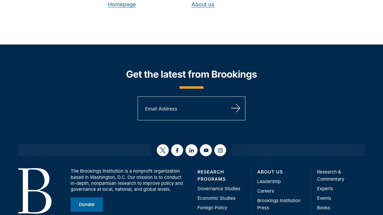 The Brookings Institution is a nonprofit public policy organization based in Washington, DC. Our mission is to conduct in-depth research that leads to new ideas for solving problems facing society at the local, national and global level.