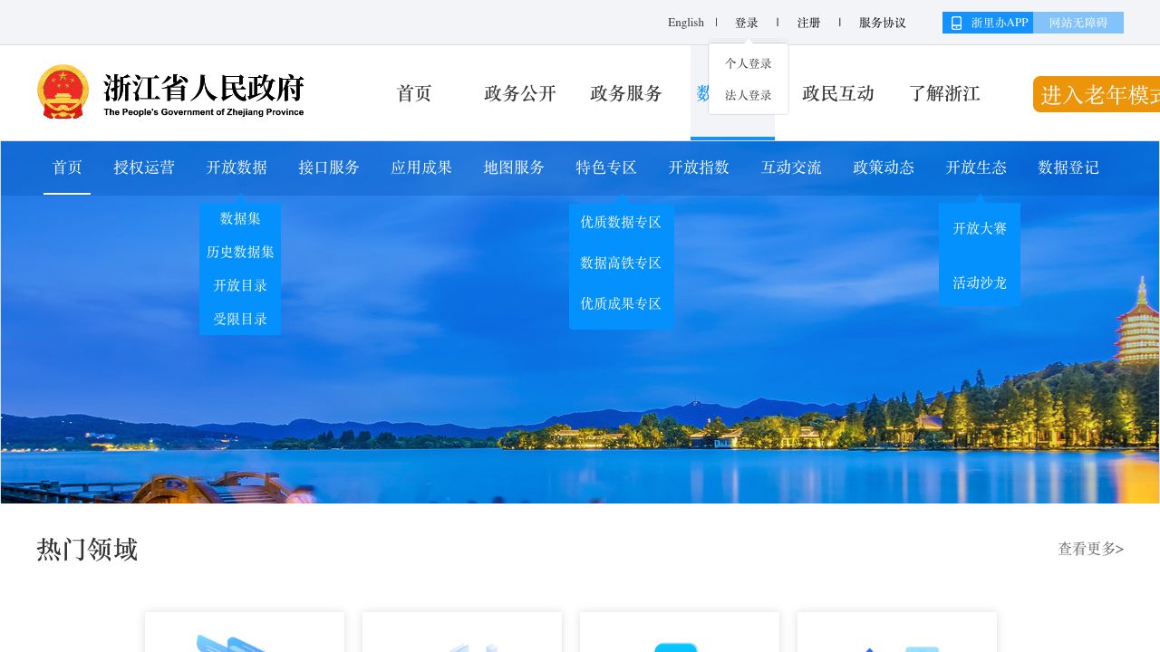 浙江政务服务网“数据开放”专题网站