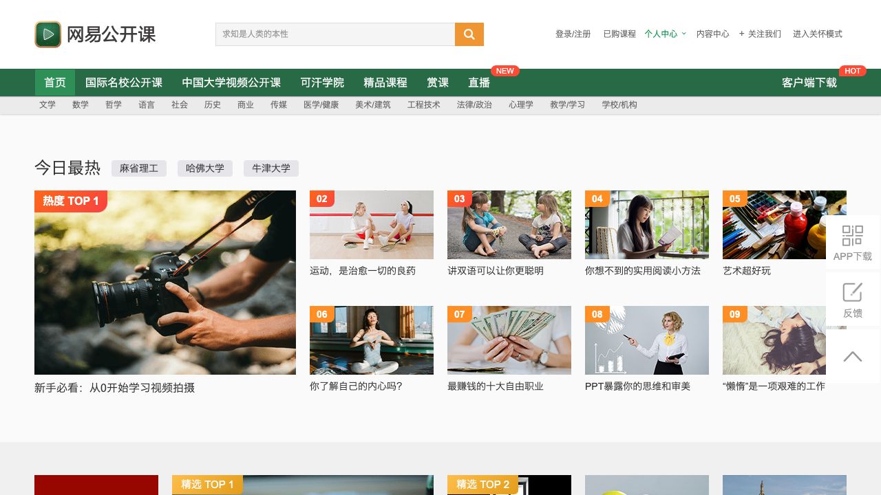网易公开课汇集清华、北大、哈佛、耶鲁等世界名校共上千门课程,覆盖科学、经济、人文、哲学等22个领域,在这里你可以开拓视野看世界,获取有深度的好知识。