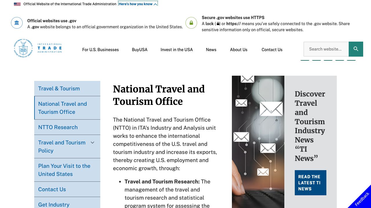 The National Travel and Tourism Office is the official USG source for travel and tourism statistics, and works to create a positive climate for Travel.