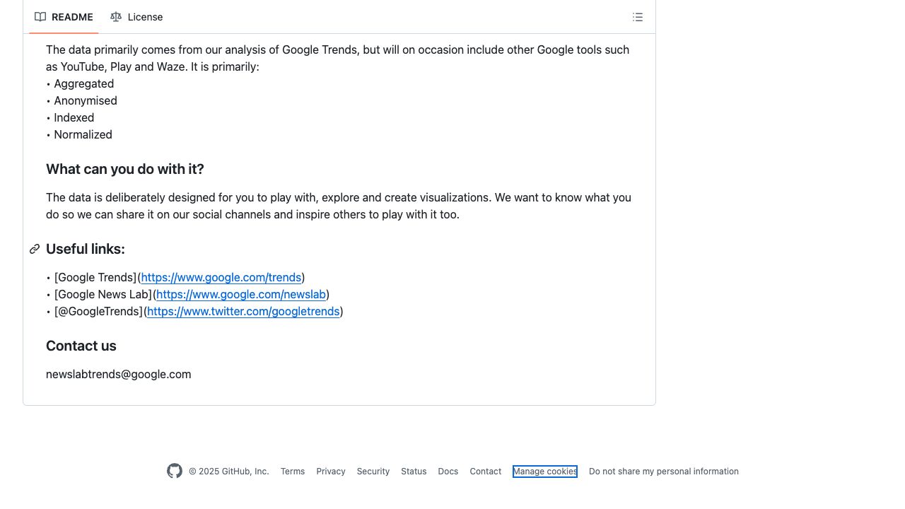 An index of all open-source data. Contribute to GoogleTrends/data development by creating an account on GitHub.