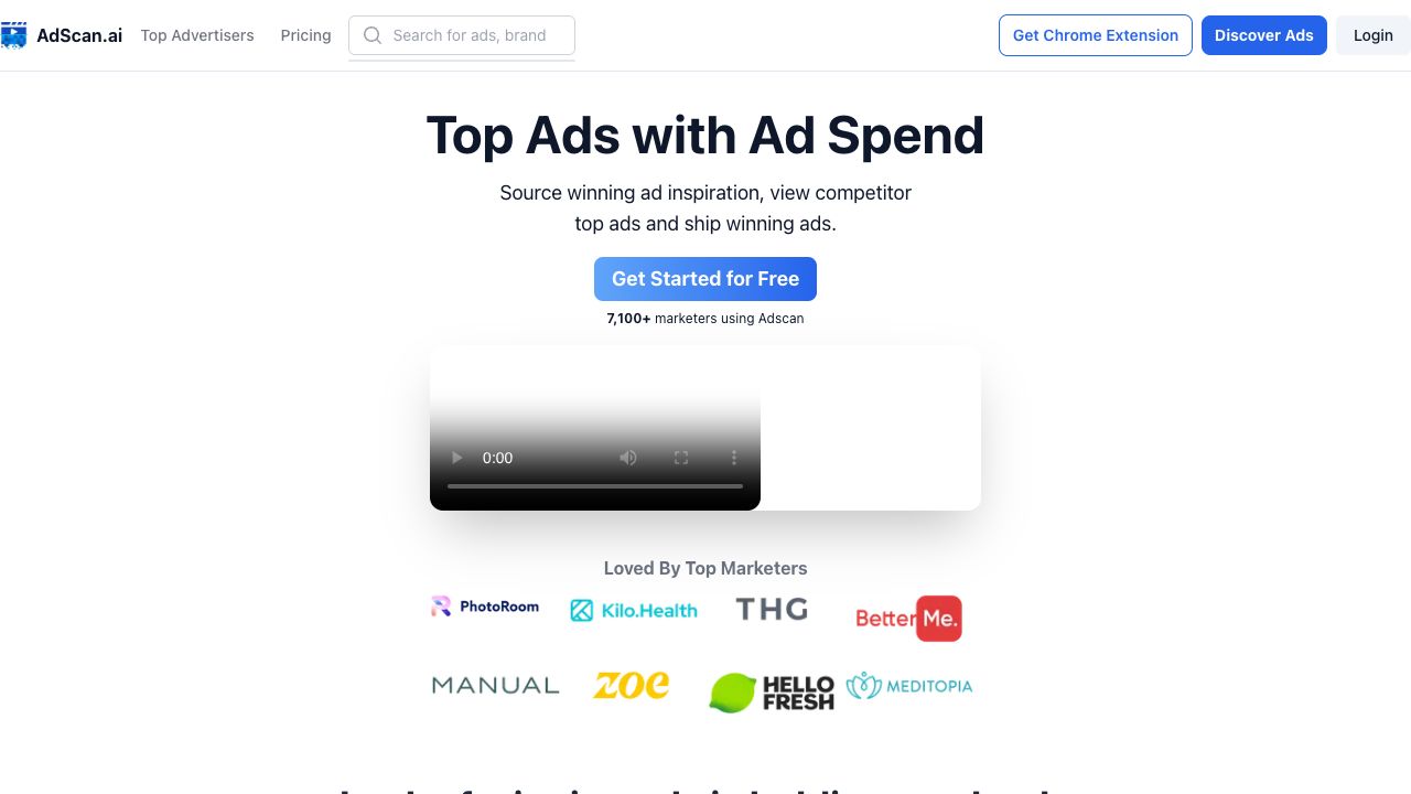 AdScan.ai is an AI-powered platform designed to analyze and improve ad performance. It provides insights into competitor's top ads, ad spend data, and offers features like AI analysis, detailed transcripts, and collaborative ad boards. The platform supports major ad libraries including Facebook, YouTube, Instagram, and TikTok, helping marketers discover winning ads and optimize their ad strategies.