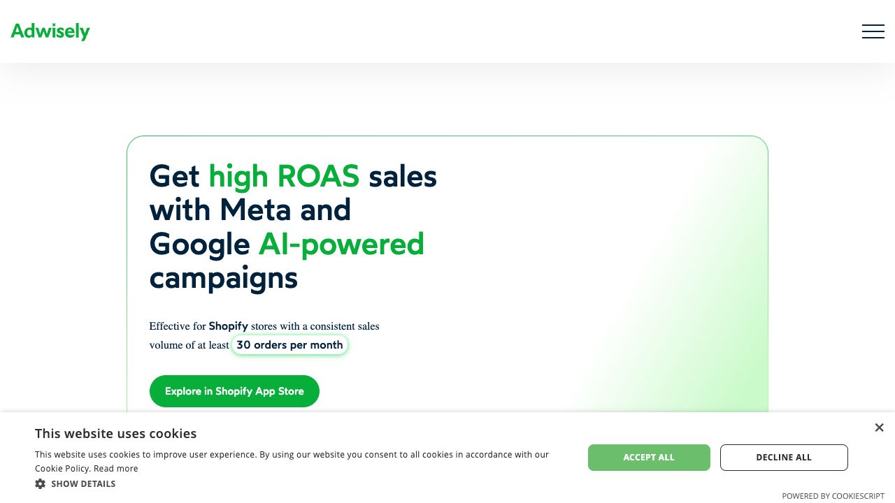 Adwisely is an AI-powered online advertising solution designed for Shopify, BigCommerce, and WooCommerce stores with a monthly ad budget of $1k+. It helps eCommerce SMBs in the USA and Europe get high ROAS sales with Meta and Google through AI-driven ad automation guided by human expertise. Adwisely offers features like Meta and Google AI-powered campaigns, retargeting and prospecting, and expert support via email.