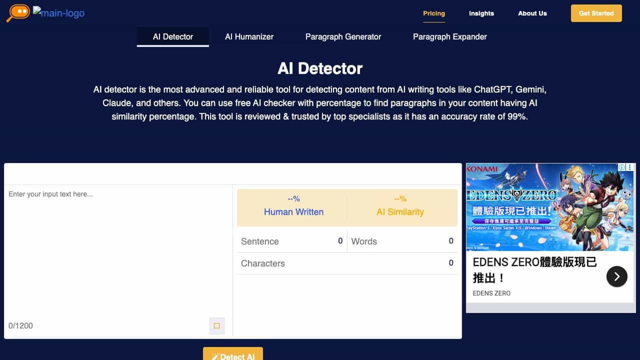 AI-Detector is a tool designed to detect the percentage of AI-generated content within a given text. It helps users determine whether content is written by a human or an AI writing tool like ChatGPT, Gemini, or Claude. The tool uses machine learning algorithms, natural language processing (NLP), and semantic analysis to identify patterns, writing styles, and sentence structures typical of AI-generated text, providing an AI similarity percentage.