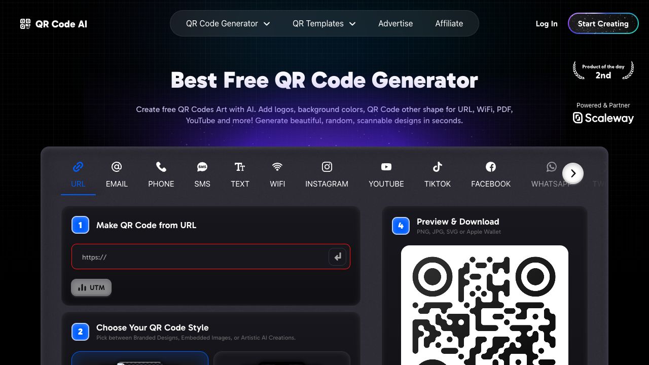 QR Code AI is an AI-powered QR code generator that allows users to create custom, scannable QR codes with logos, colors, and unique designs. It offers features like dynamic QR codes, scan tracking, and real-time editing. The platform prioritizes security with encrypted, GDPR-compliant servers and advanced anti-scam technology to protect against phishing and fake QR codes. It supports over 50 QR code types, API integration, and provides detailed analytics to optimize marketing campaigns.