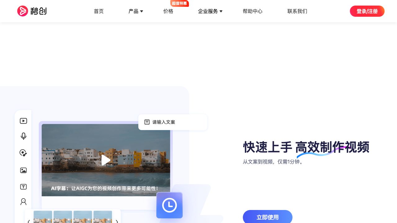 一帧秒创是基于新壹大模型及秒创AIGC引擎的智能AI内容生成平台,包含AI数字人、AI帮写、AI视频、AI作画等AIGC工具,可将百家号、公众号、头条号、搜狐号、新浪微博、小红书等文章一键转视频,一键生成数字人播报视频,为企业及自媒体提供一站式视频生产,全面提升内容创作效率。