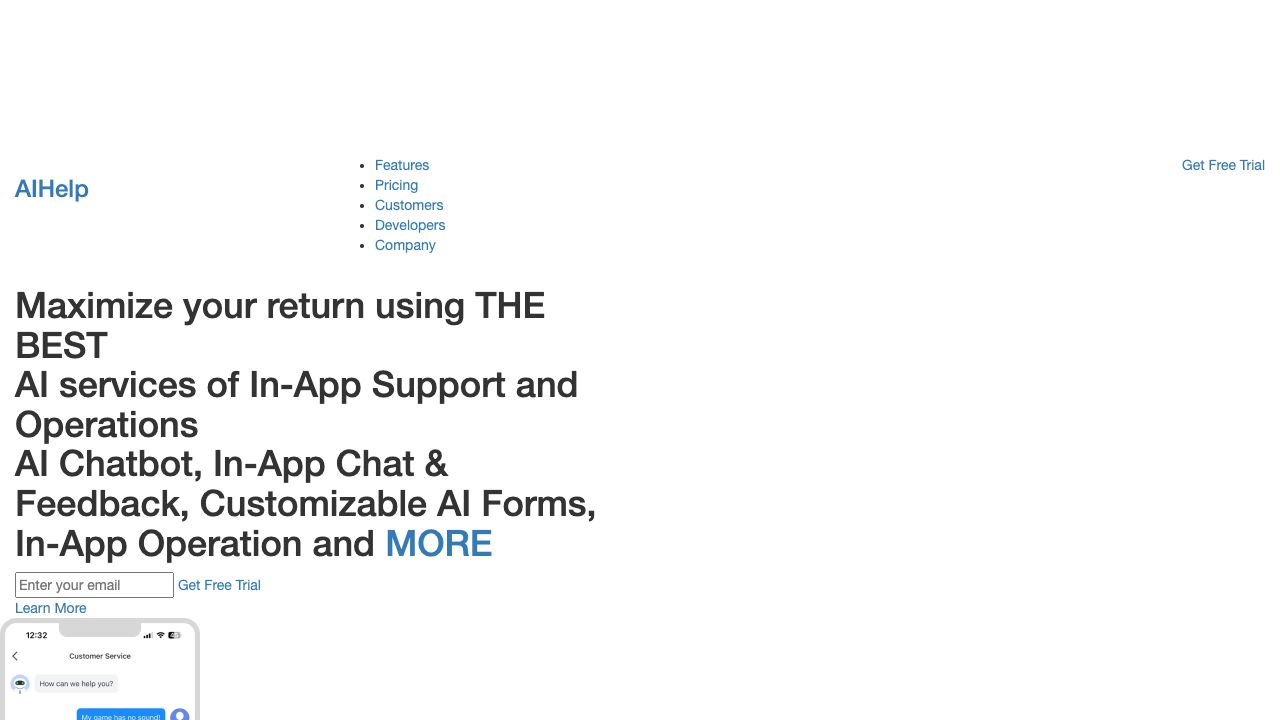 AIHelp is an in-app support platform that uses AI-powered messaging experiences to improve customer satisfaction, optimize in-app operations, and automate conversations with a chatbot. It provides customer service support and an in-app ticketing system, offering features like AI Chatbot, In-App Chat & Feedback, Customizable AI Forms, and In-App Operation tools. AIHelp supports mobile and web customer support, providing personalized support and enabling developers to integrate help directly into their apps.