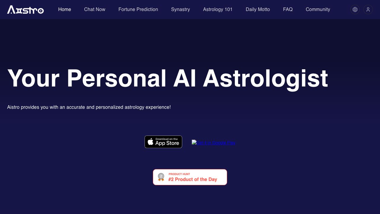 Aistro combines ancient Astrology with modern large language model AI. The Aistro app allows users to ask questions about their horoscope, personality, or future, providing personalized readings based on birth date, time, and location. It offers insights into zodiac signs, planets, and potential, guiding users towards self-awareness and life direction. Aistro aims to unlock inner light and facilitate heart-to-heart communication through star chart analysis, offering fortune forecasts for career and love. It also prioritizes data privacy using decentralized storage.