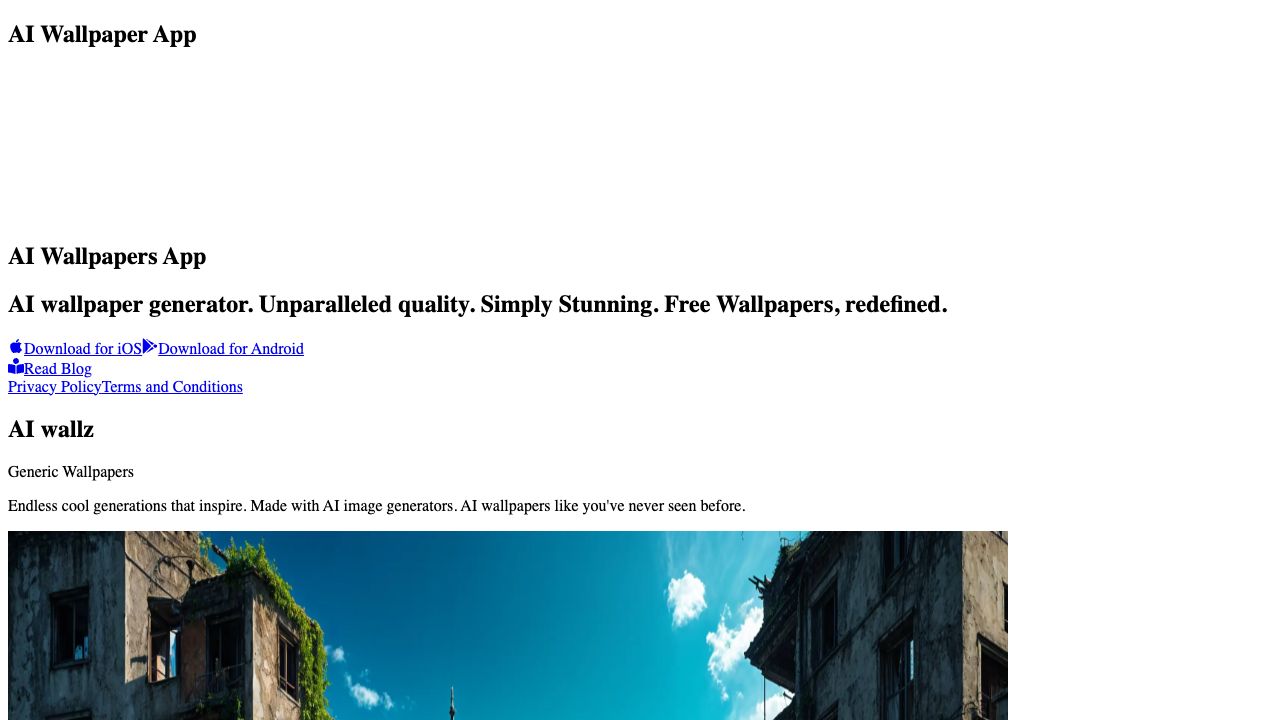 Ai Wallpapers offers AI-generated wallpapers for various devices. It provides high-quality, visually stunning wallpapers created using AI image generators. The platform includes options for AI wallpaper, AI wallpaper 4k, AI wallpaper generator, pixel AI wallpaper, and Android 14 AI wallpaper. It aims to redefine wallpapers with endless cool generations that inspire.
