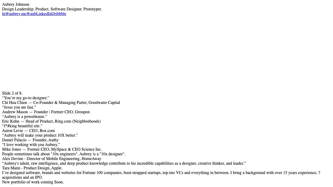 Aubrey Johnson is a software, brand and website designer who has worked with members of the Fortune 100, boot-strapped startups, top-tier VCs and everything in between. He brings a background with over 15 years experience, 6 acquisitions and an IPO.