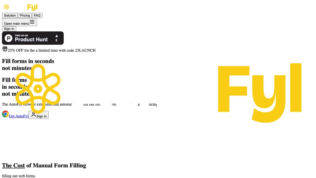 AutoFyl is a browser extension designed to automatically fill out forms using AI or dynamically generated data. It aims to reduce errors, increase work speed, and eliminate time wasted on repetitive form filling tasks. AutoFyl offers features like cross-browser support and secure data storage within the browser.