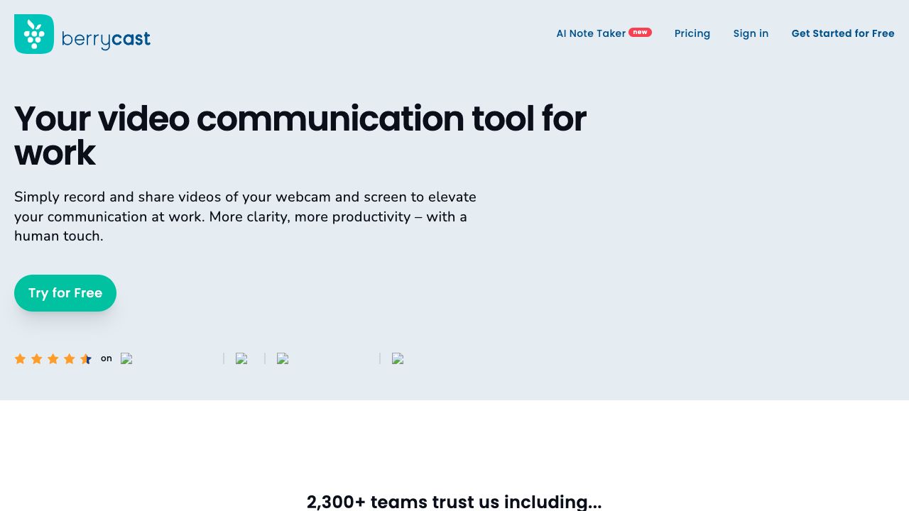Berrycast is a screen recorder and video messaging platform designed to enhance communication at work. It allows users to record and share videos of their webcam and screen, generate live transcripts, and use AI to create conversation summaries, action items, email drafts, and how-to articles. It is particularly useful for mortgage brokers to guide and support clients.