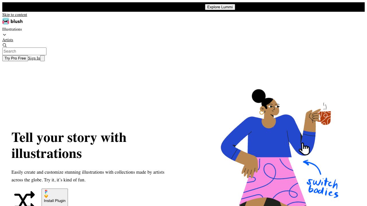 Blush makes it easy to add free illustrations to your designs. Play with fully customizable graphics made by artists across the globe. It allows users to create and customize stunning illustrations with collections made by artists around the world. Users can choose a style, customize the art, and use it on their design by downloading a PNG or SVG.