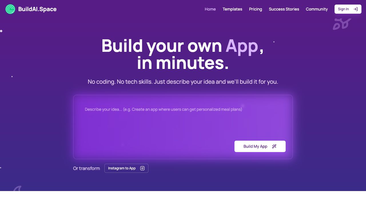 Describe your app idea in plain language, and BuildAI will build it for you. Alternatively, start from a template and customize it to your needs.