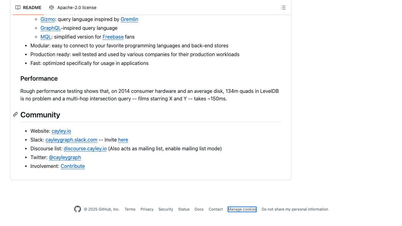 An open-source graph database. Contribute to cayleygraph/cayley development by creating an account on GitHub.
