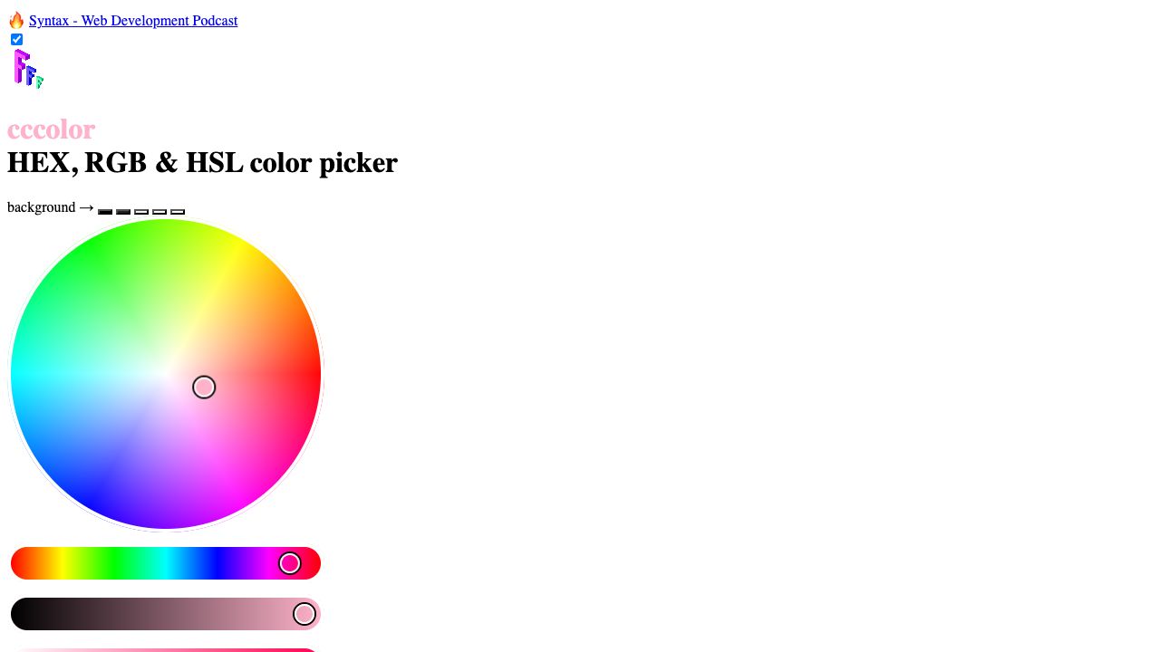 Simple online color picker for web designers, with color values automagically available as RGB, HSL, hex, or 8-digit hex (with alpha). Perfect for CSS and HTML.