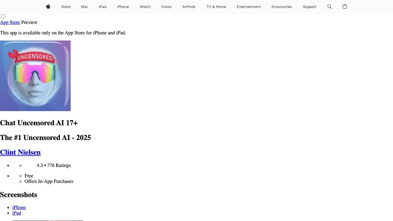 Chat Uncensored AI is an iPhone and iPad application developed by Clint Nielsen, designed to provide an unrestricted AI chat experience. It boasts the latest 2024 AI model, offering users unfiltered opinions, true answers, companionship, role-playing capabilities, NSFW content, and real-time information. The app emphasizes privacy, claiming to be 100% private with no login required. It includes features like image and video support, AI-generated suggested questions, and voice responses. The app aims to provide an AI experience without censorship, bias, or restrictions, supporting multiple languages and trusted by over 10,000 users.