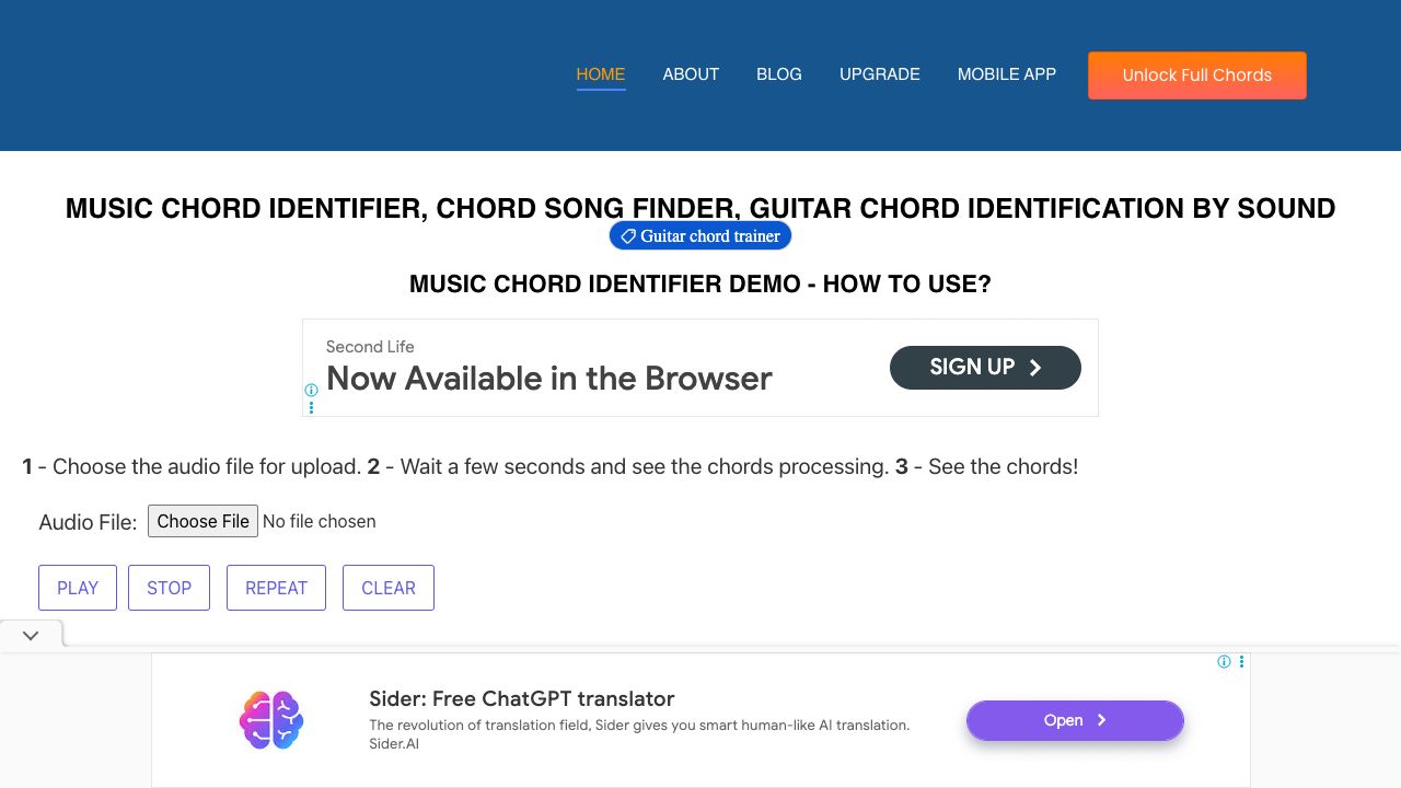 Choose an audio file (local or YouTube URL), wait a few seconds for processing, and see the chords. The tool uses artificial intelligence to recognize chords with high accuracy.