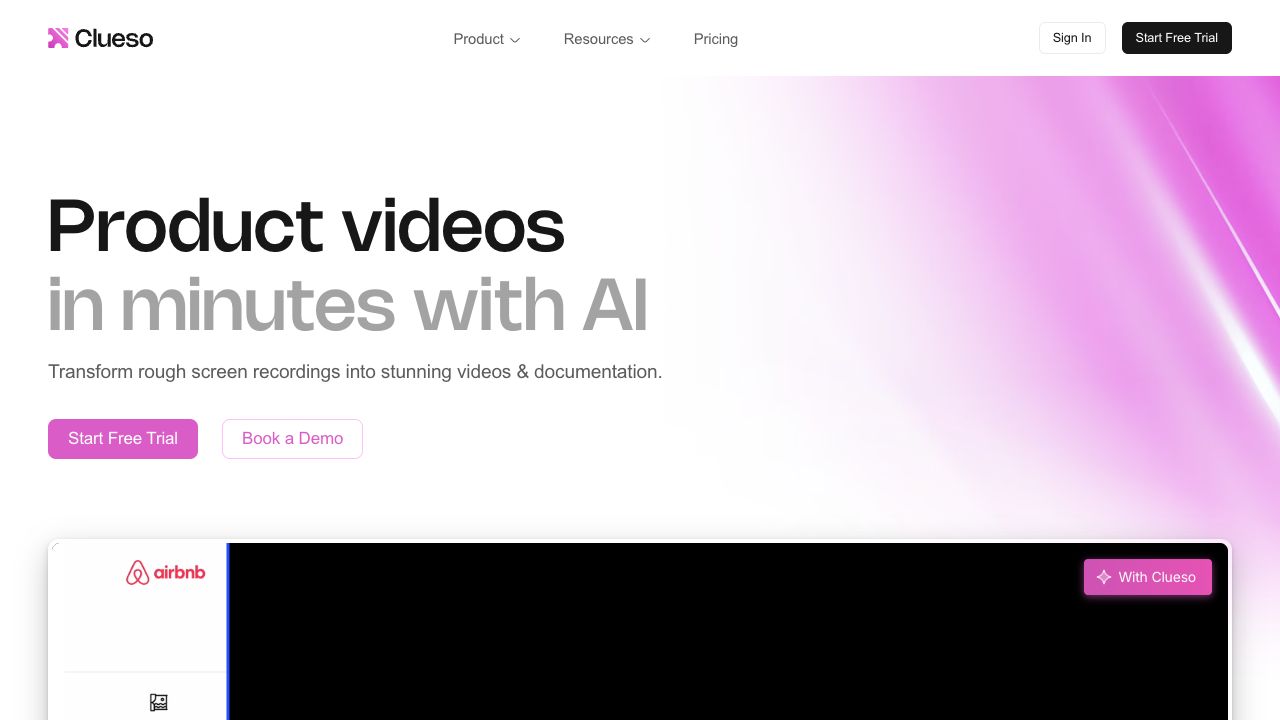 Clueso is an AI-powered video editor that helps marketing teams create product videos, documentation, and more in minutes. It allows users to turn screen recordings into stunning product videos and step-by-step documentation with AI. Clueso aims to achieve 10x the quality in just 10% of the time by automating video editing tasks and providing easy-to-use features.