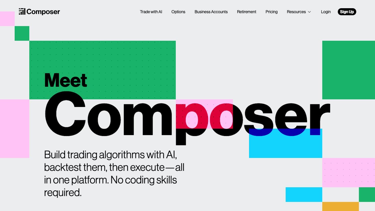 Composer is a trading platform and investment app that enables users to build and execute trading algorithms without coding.
