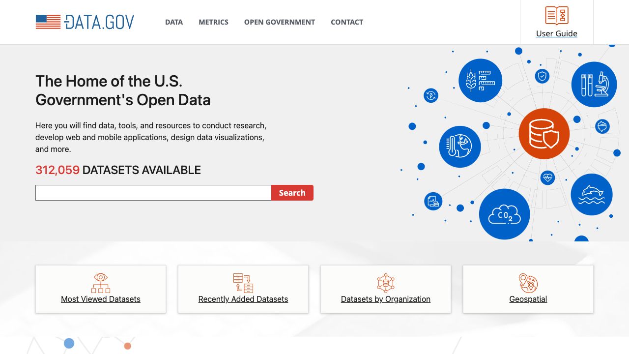 The Home of the U.S. Government's Open Data. Here you will find data, tools, and resources to conduct research, develop web and mobile applications, design data visualizations, and more.