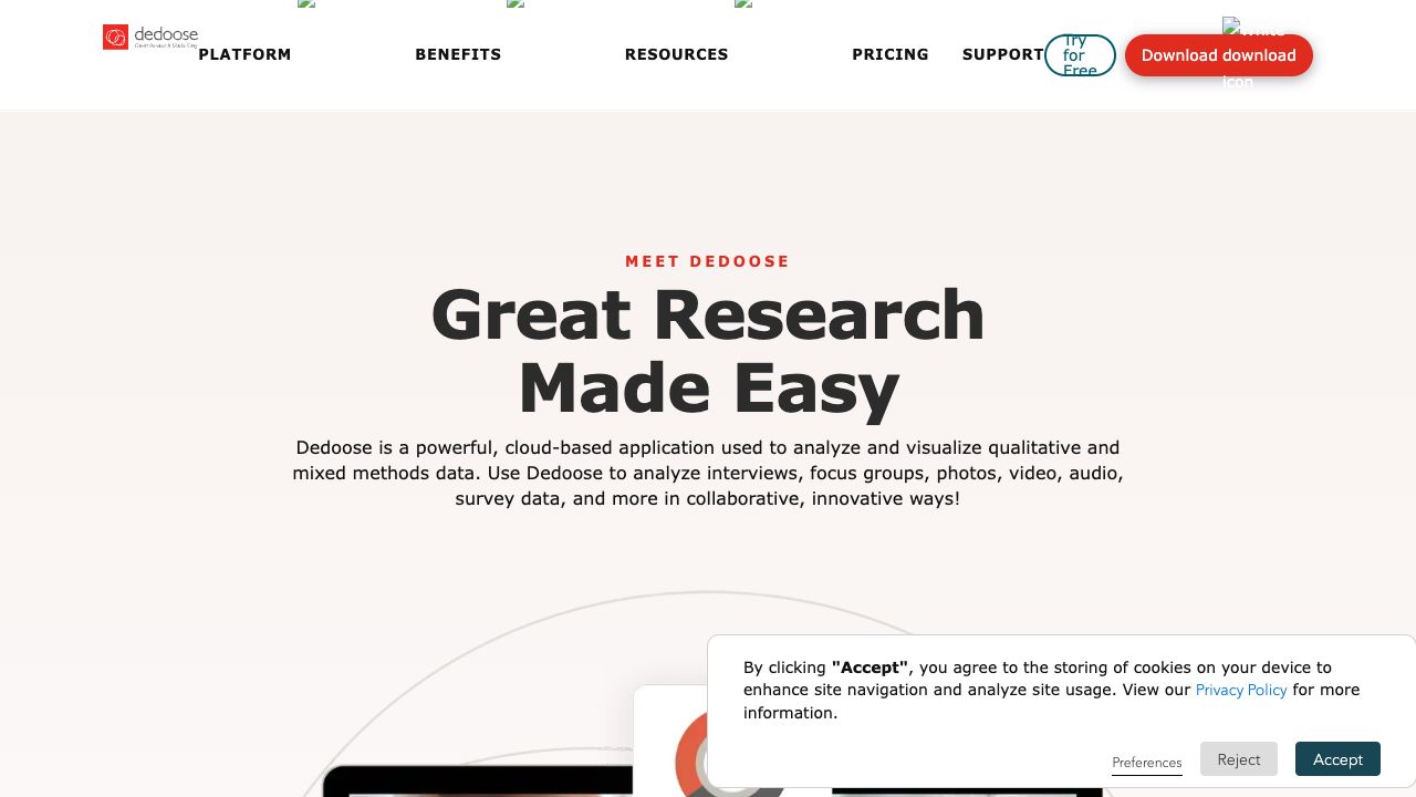 Dedoose is a cloud-based app that was developed by UCLA researchers. Analyze text, video, audio, and PDFs to uncover hidden patterns in your data.