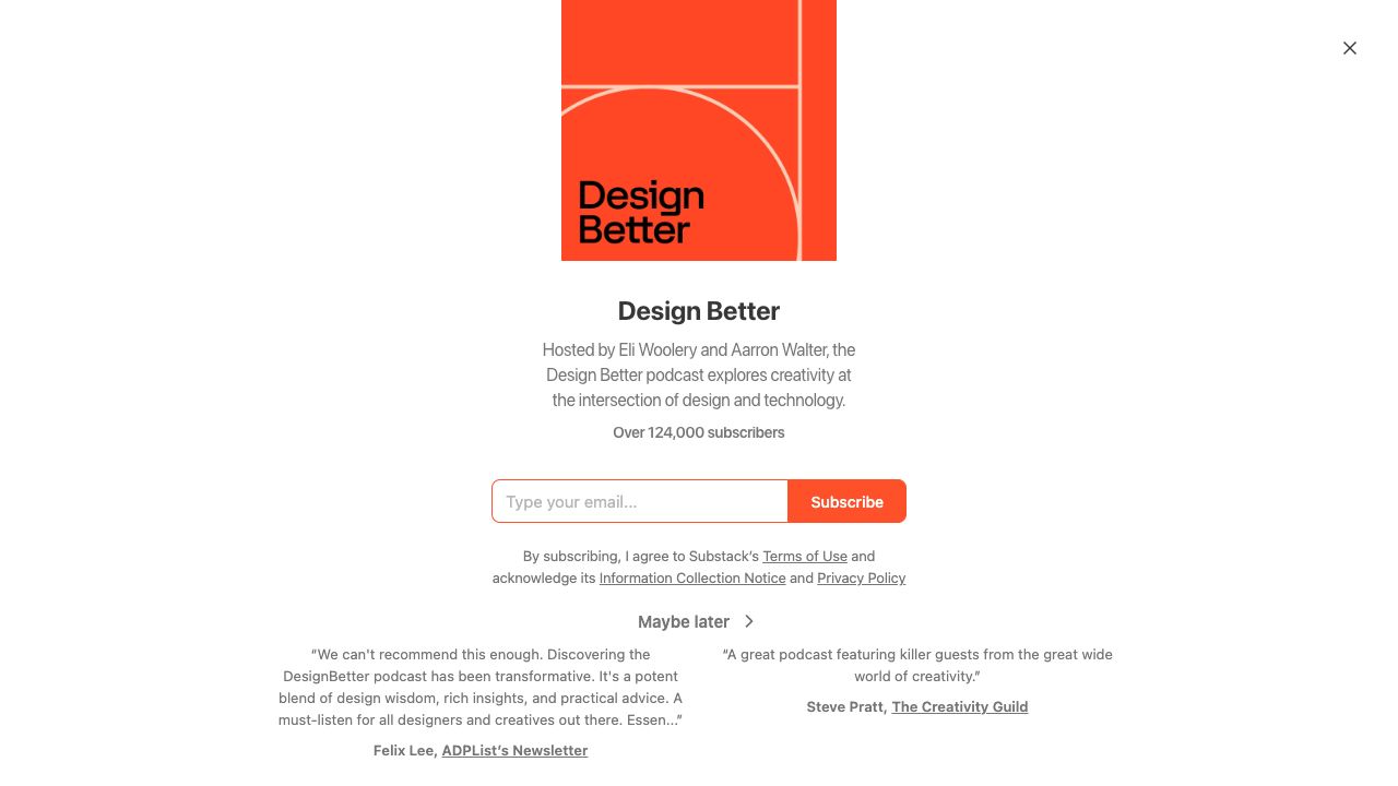 Design Better co-hosts Eli Woolery and Aarron Walter explore the intersection of design, technology, and the creative process through conversations with inspiring guests across many creative fields. Whether you’re design curious or a design pro, Design Better is guaranteed to inspire and inform. Episodes are released semi-weekly.