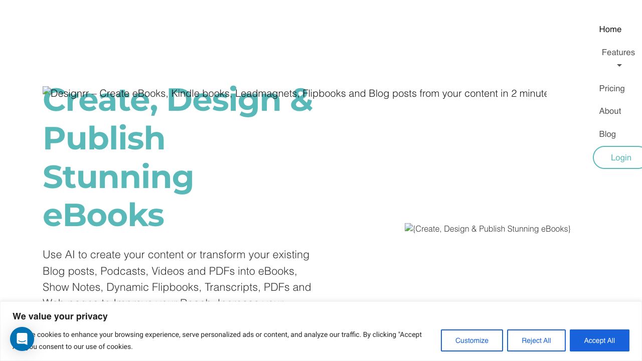 Designrr is a platform that allows users to create eBooks, Kindle books, lead magnets, flipbooks, and blog posts from various content sources like web pages, MS Word documents, videos, podcasts, and YouTube. It offers AI-powered content creation and repurposing tools, along with templates and customization options for publishing in multiple formats.