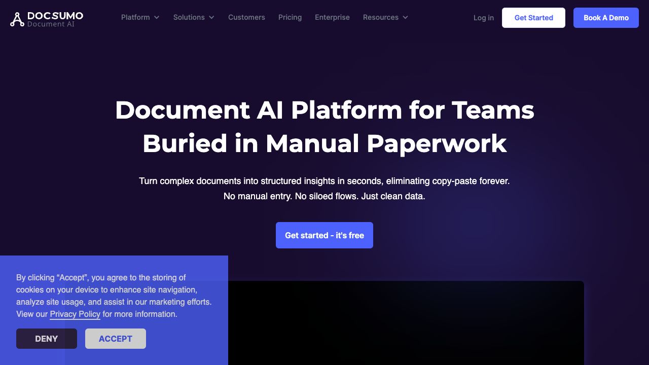 Docsumo is a Document AI Platform built for scale & efficiency. It automates data extraction, validation & review from unstructured documents with 99% accuracy. It helps to get 10 times more efficient at processing various documents with Docsumo's IDP solution and custom-made APIs. It enables enterprises to become digital & efficient by automating document processing.