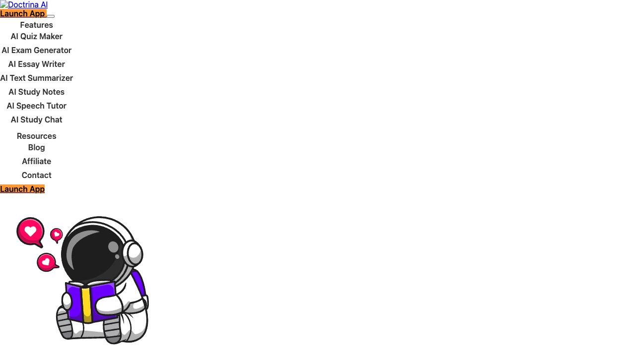Use Doctrina AI to create quizzes, generate exams, improve class notes, write essays, summarize texts, chat with an AI tutor, and practice speaking in different languages. Access the platform through the web app or download the mobile app.
