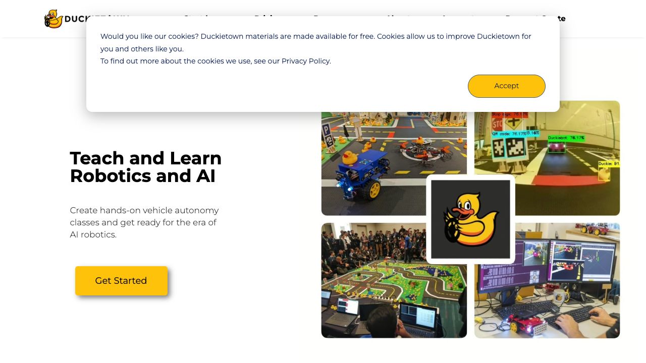 Duckietown provides resources for teachers and learners to democratize access to the science and technology of autonomous vehicles. It offers streamlined teaching solutions, hands-on learning experiences, and an open research platform, bridging theory with practical application. Duckietown started as a class at MIT in 2016 and is now a worldwide initiative to realize a new vision for AI and robotics education: state-of-the-art, hands-on, and for all.