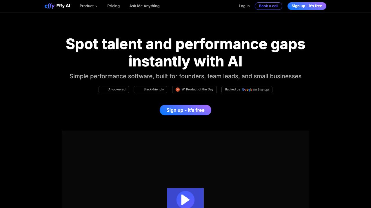 Effy AI is an AI-powered performance management software designed to boost team productivity and engagement. It offers ready-to-use templates for professional performance reviews, an AI-summarizing feature to save time on report preparation, and employee-friendly features like review submission in Slack. Effy AI supports performance reviews, 360-degree feedback, and 90-day reviews, aiming to simplify and enhance the performance management process.