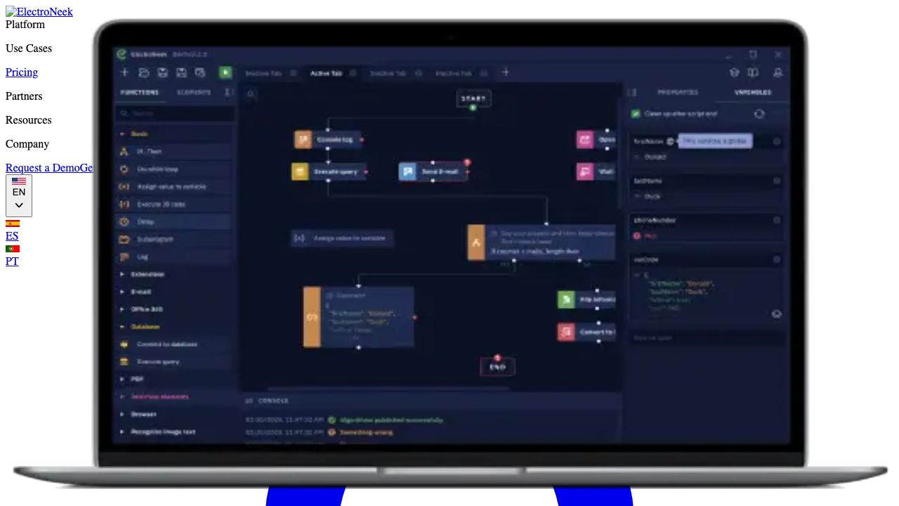 Precios de ElectroNeek: AI - RPA platform for Business Process Automation