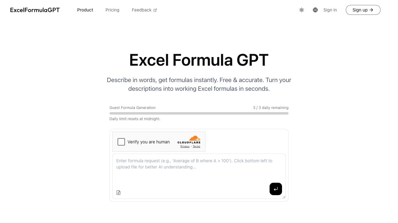 • AI-powered Excel formula generation
