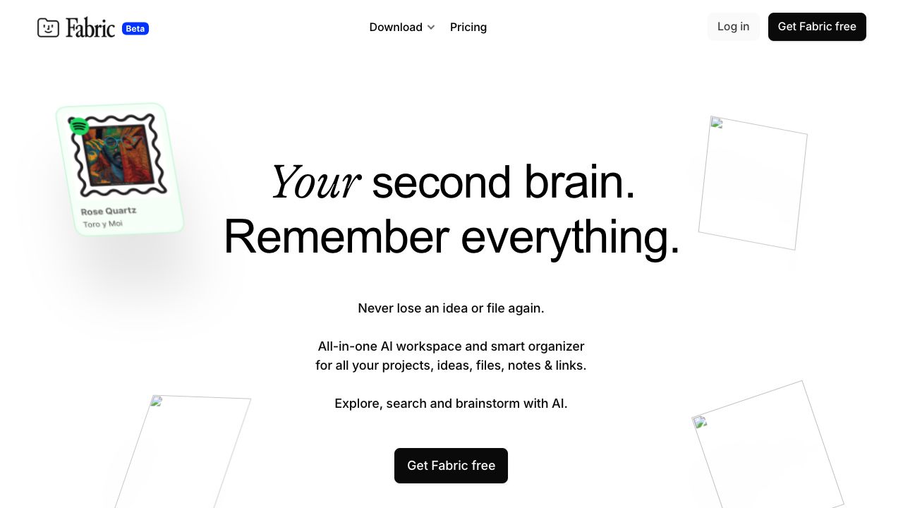 Fabric allows you to drop files, links, notes, and other digital assets into its interface. The AI automatically understands and connects related items. You can then search, explore, and collaborate on these items within Fabric.
