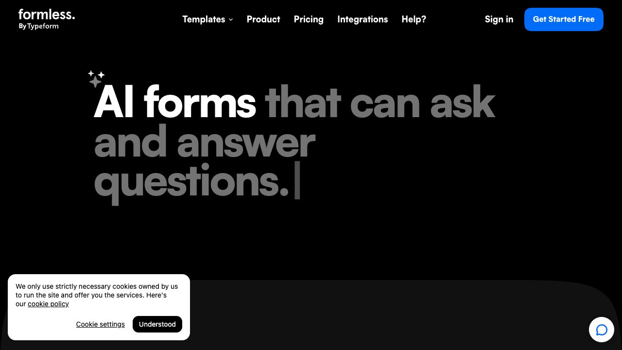 Formless by Typeform is an AI-driven form builder that creates conversational forms. These forms not only collect data but also respond to users, ask and answer questions, and engage them at any touchpoint. It allows users to train the AI on their data to answer user questions, supports 120+ languages, and can be embedded in multiple formats.