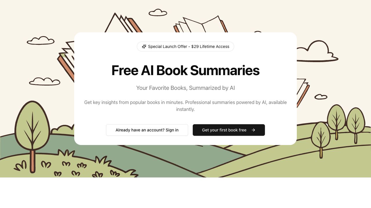 Sign up to get your first book summary for free. Access a new free book summary daily. For unlimited access, purchase the lifetime access offer.