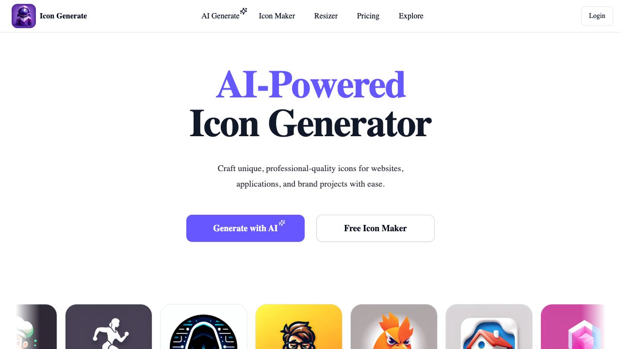 IconGenerate.com is an AI-powered icon and logo generator designed for creatives and developers. It allows users to instantly craft custom icons and logos that seamlessly integrate into their projects. The platform offers a variety of icon styles, including modern, polygonal, pixelated, and isometric, and provides tools for customization and resizing. Users can generate unique, professional-quality icons for websites, applications, and branding projects with ease, streamlining their creative process and offering affordable excellence.