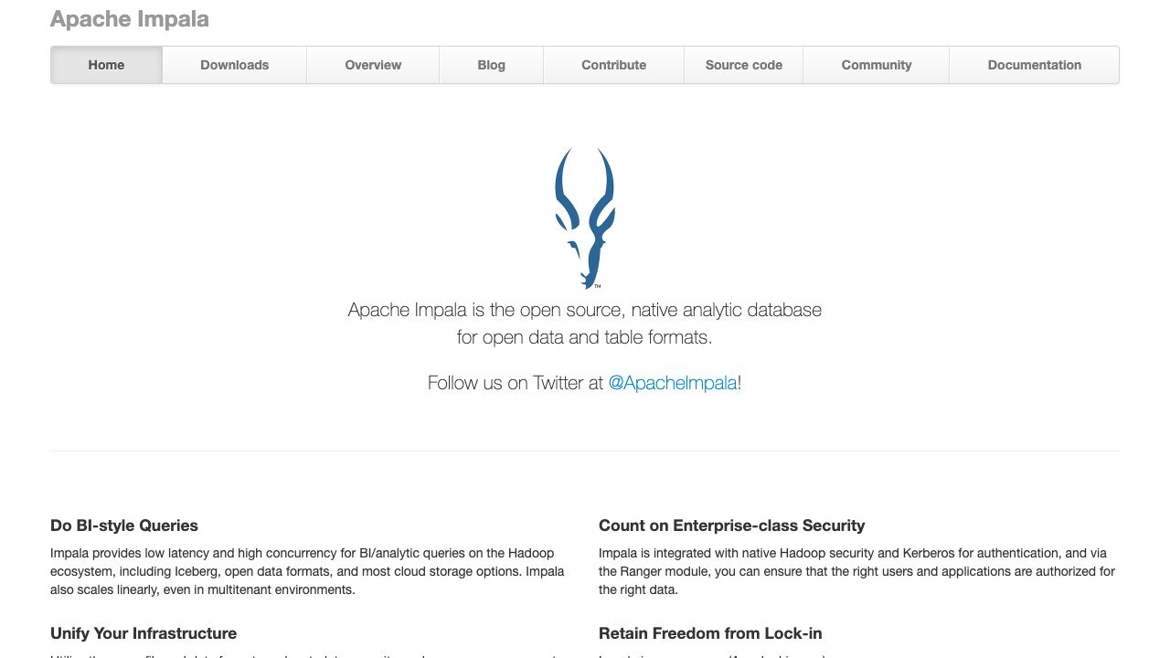 Apache Impala is a modern, open source, distributed SQL query engine for open data and table formats.
