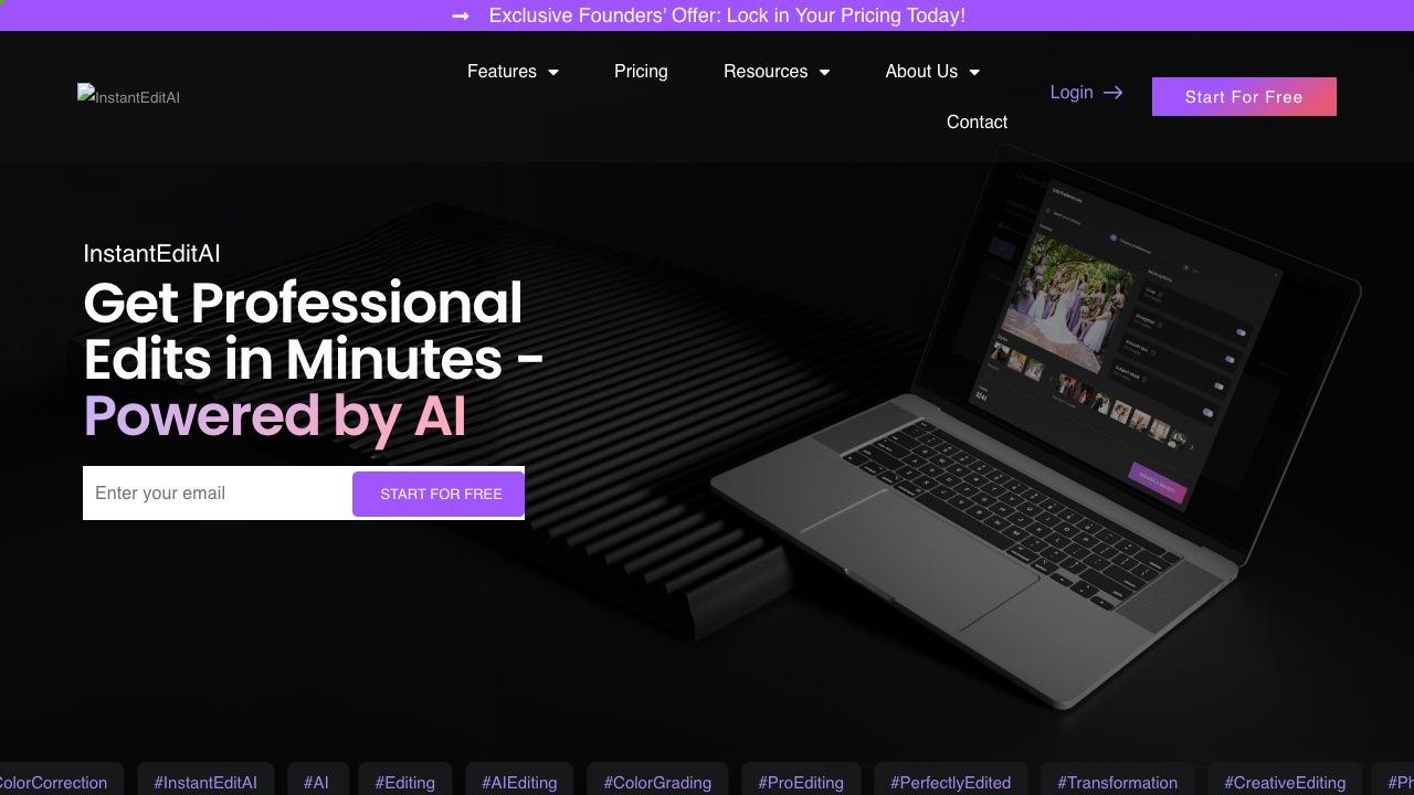InstantEditAI brings professional automated AI photo editing to everyone! Edit your wedding, event, or party photos instantly with the same technology photographers use. No software needed. Save time, money, and take control of your edits! Transform photos instantly with InstantEditAI. Our AI technology delivers quick, professional-quality edits. Elevate your images with just a few clicks.