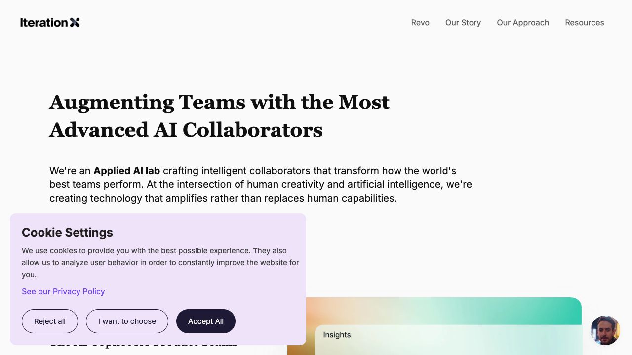 Iteration X is an Applied AI lab crafting intelligent collaborators that transform how the world's best teams perform. They focus on augmenting human capabilities with AI, rather than replacing them. Their flagship product, Revo, is an AI copilot for product teams that unifies data from across the product ecosystem to provide a single source of truth, enabling faster and smarter decisions.
