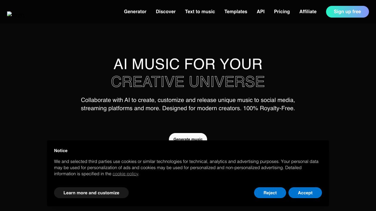 Loudly is an AI music platform designed for creators, music producers, and innovators. It allows users to create, customize, and release high-quality music using the power of AI, all in one place. Loudly offers features like AI music generation, audio clip integration, text-to-music conversion, studio remixing, music distribution, sample pack generation, and royalty-free music browsing.