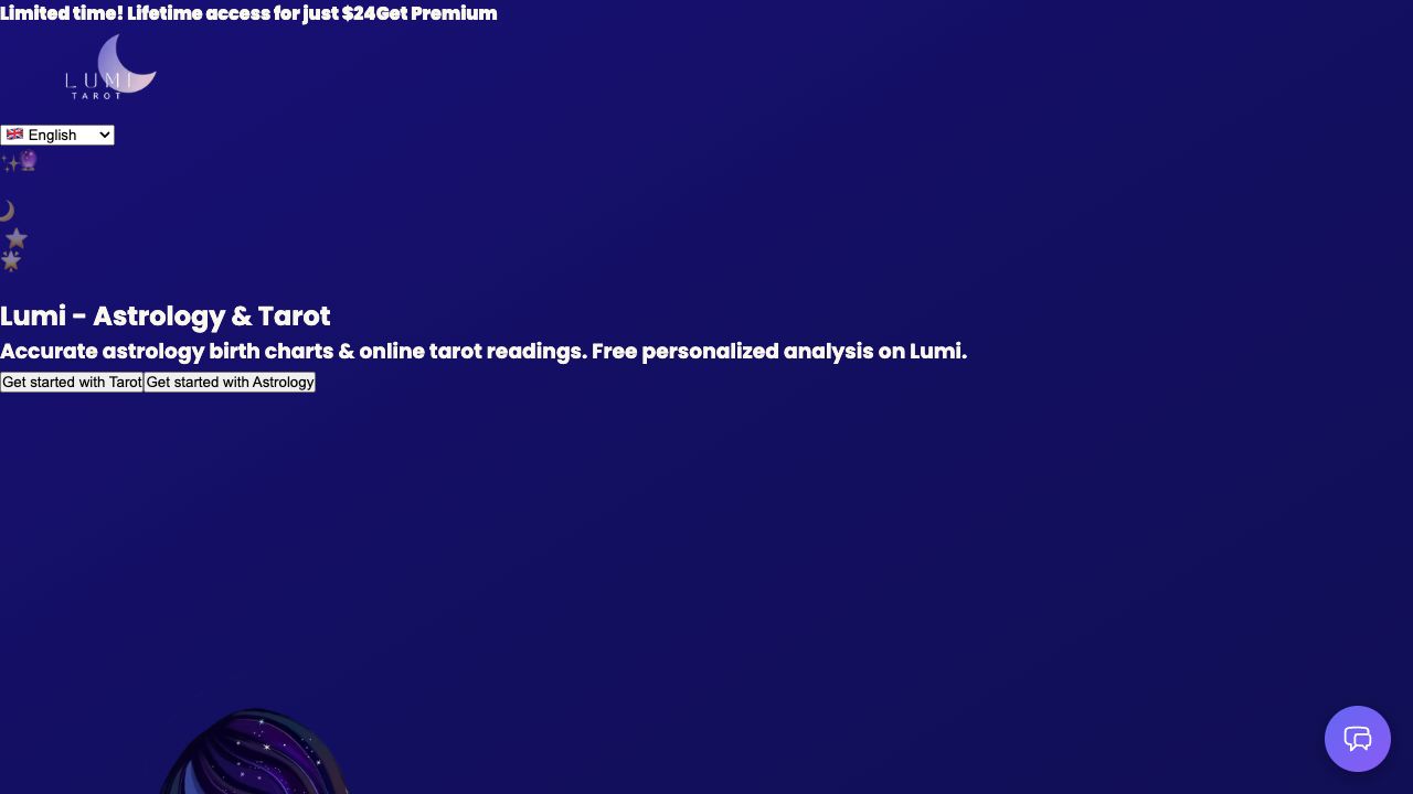 Lumi is an online platform that provides astrology birth charts and tarot readings. It offers personalized natal chart analysis and interactive tarot readings, leveraging AI for insights and guidance. Users can explore various services, including astrology chat with personal astrologers, and access a blog with articles on mystic arts.