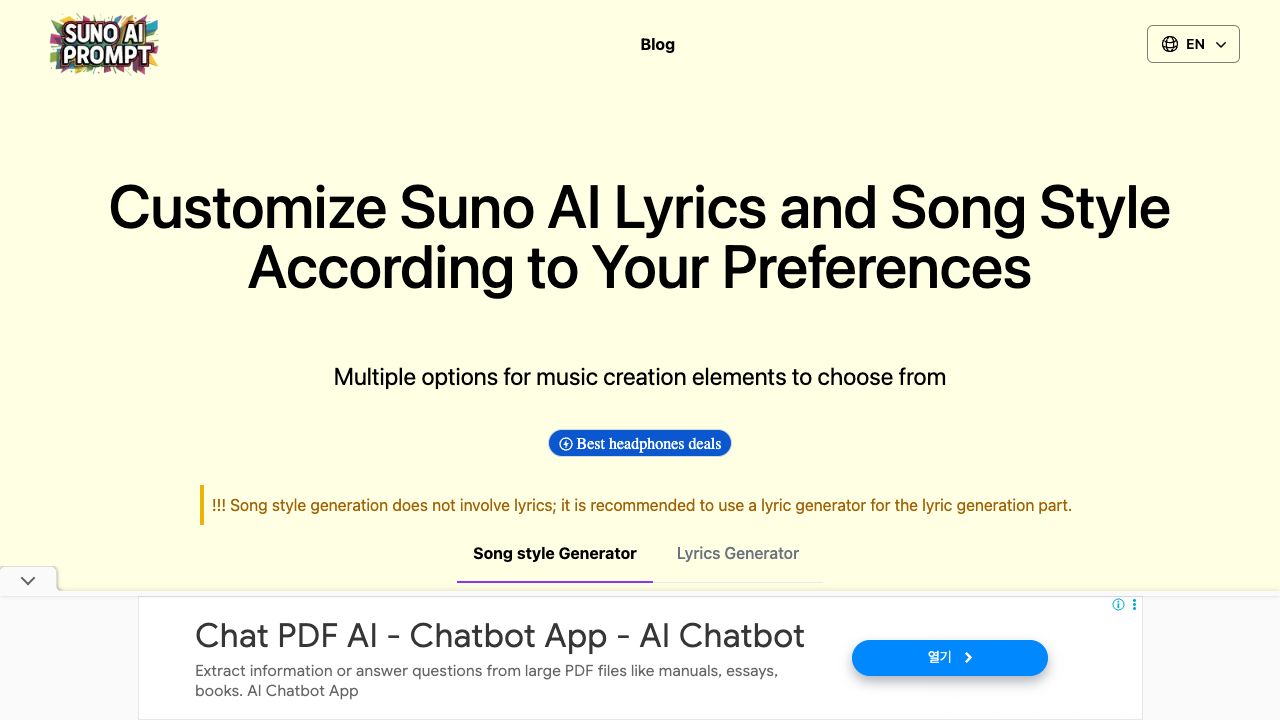 This tool leverages AI to generate music prompts based on user thought, including genre, theme, melody, and more. With the ability to customize musical elements down to the finest detail, users can quickly obtain inspiration, overcome creative blocks, and freely combine various musical elements to create their own unique suno style and lyrics with suno metatags.