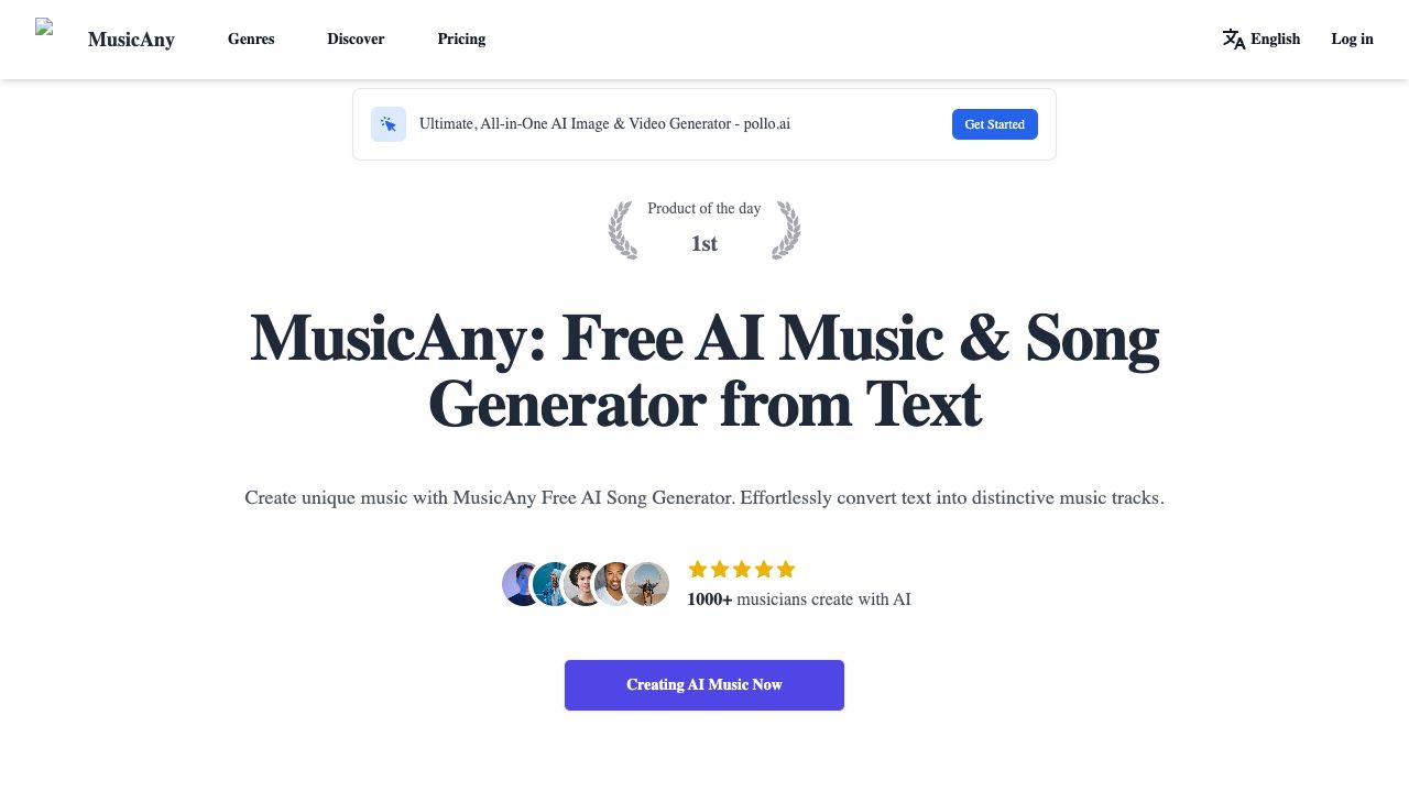 MusicAny is an AI-powered tool that creates original music from text descriptions or lyrics. It allows users to effortlessly craft unique, high-quality MP3 tracks without needing any musical background. It offers both Simple Mode and Custom Mode for music creation, catering to different levels of user control and expertise. MusicAny also provides royalty-free licensing for all AI-generated songs, making it suitable for both personal and commercial use.