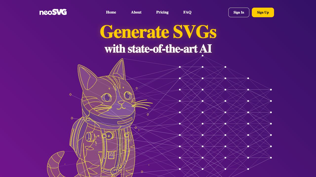 neoSVG is an AI-powered SVG generator that creates scalable, high-quality vector graphics from text prompts. It offers a user-friendly interface where users can type their requests and receive illustrations suitable for websites, branding, UI/UX, and digital art.